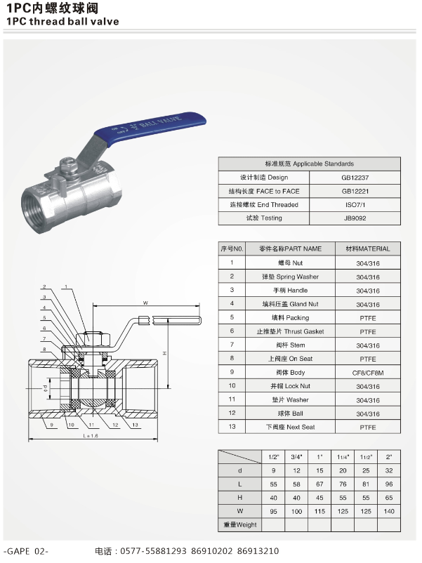 一片式內螺紋球閥【產品信息】