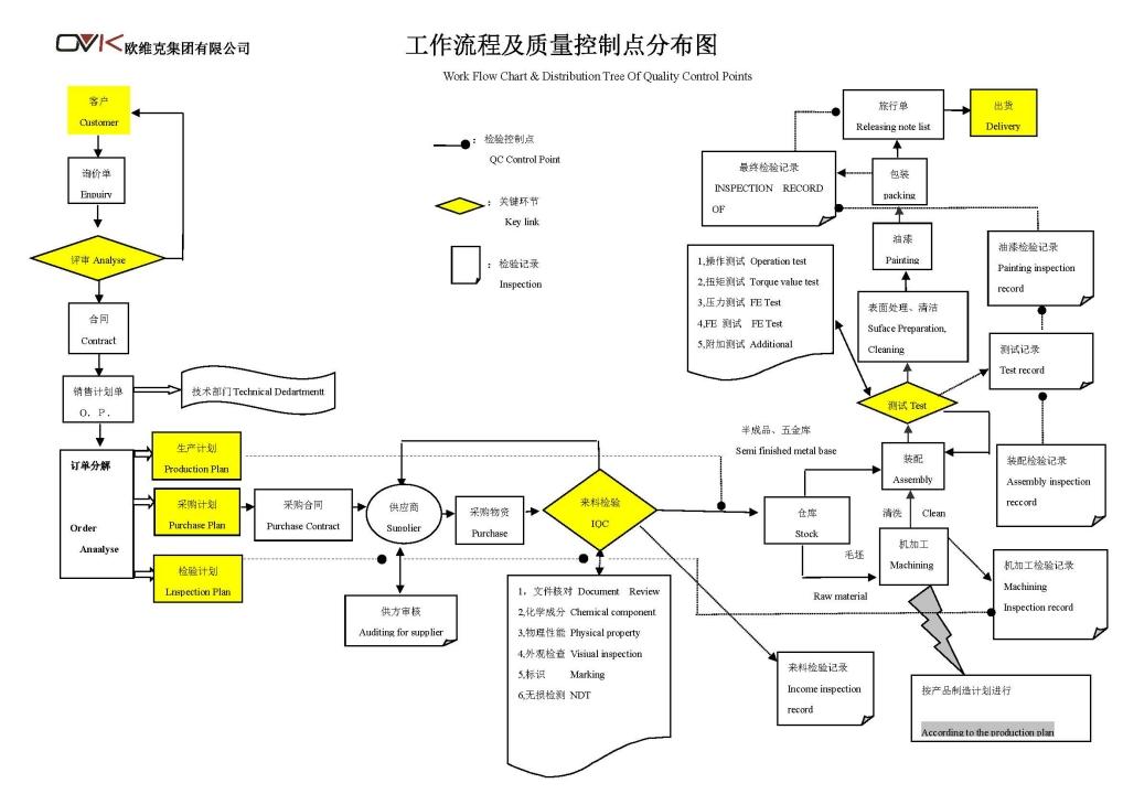 公司按照閥門(mén)標(biāo)準(zhǔn)設(shè)立有質(zhì)量網(wǎng)絡(luò)檢測(cè)節(jié)點(diǎn),實(shí)現(xiàn)檢測(cè)項(xiàng)目全覆蓋,生產(chǎn)過(guò)程層層把關(guān)。采取定崗定責(zé)、過(guò)程檢查、質(zhì)量考核、責(zé)任追究、質(zhì)量追溯、數(shù)據(jù)統(tǒng)計(jì)分析等一系列行之有效的方法,做到關(guān)鍵工序重點(diǎn)控制、普通工序規(guī)范操作,通過(guò)對(duì)生產(chǎn)過(guò)程的全面控制和對(duì)關(guān)鍵節(jié)點(diǎn)的有效監(jiān)督,提高了工作質(zhì)量,保證了產(chǎn)品質(zhì)量。